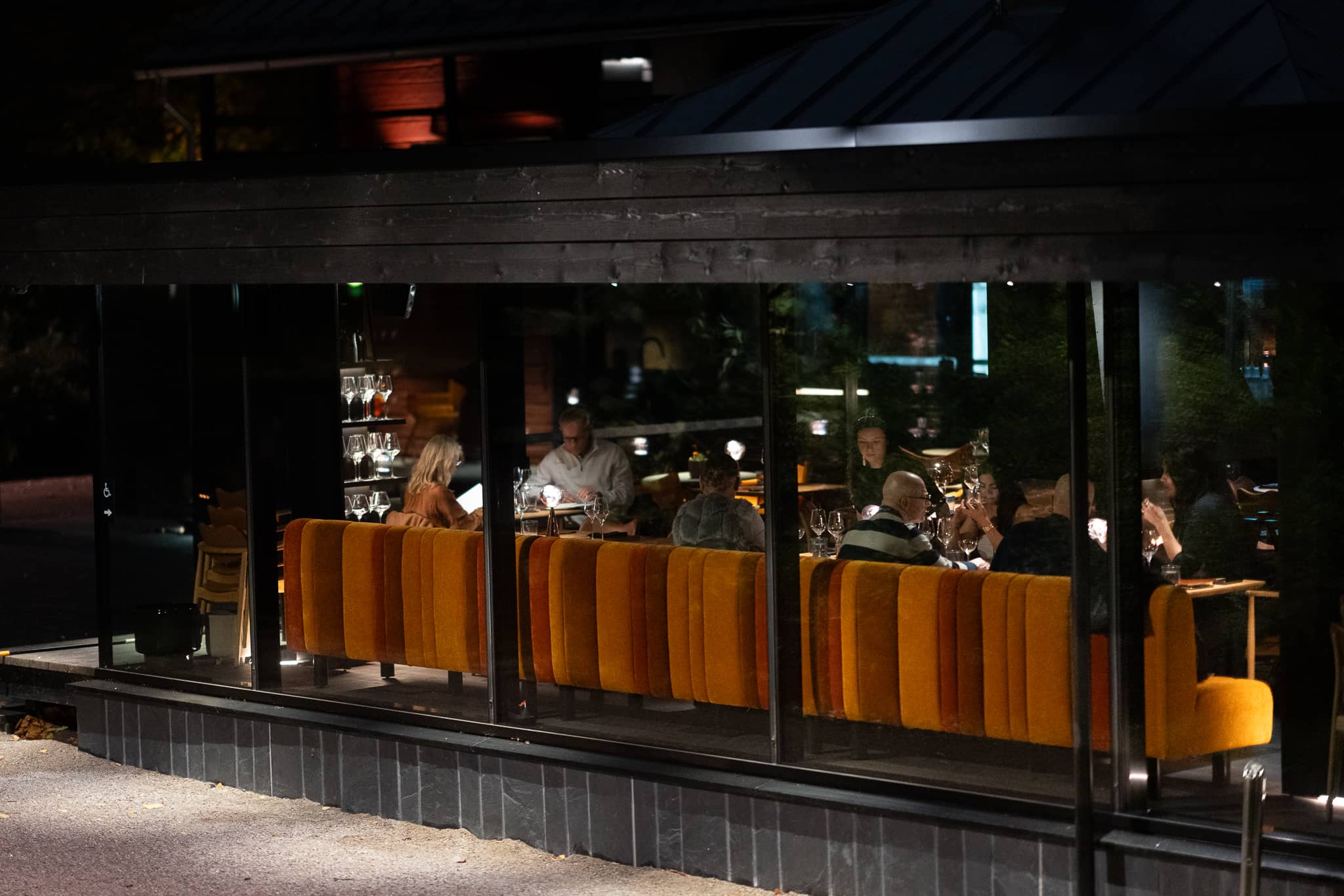 Paviljonki is a glass pavilion opening in every direction toward the surrounding nature. The 360° windows and fireplace create an airy, atmospheric space where light and mood shift beautifully throughout the day. It’s the perfect setting for events that call for openness, brightness and a distinctly memorable atmosphere.